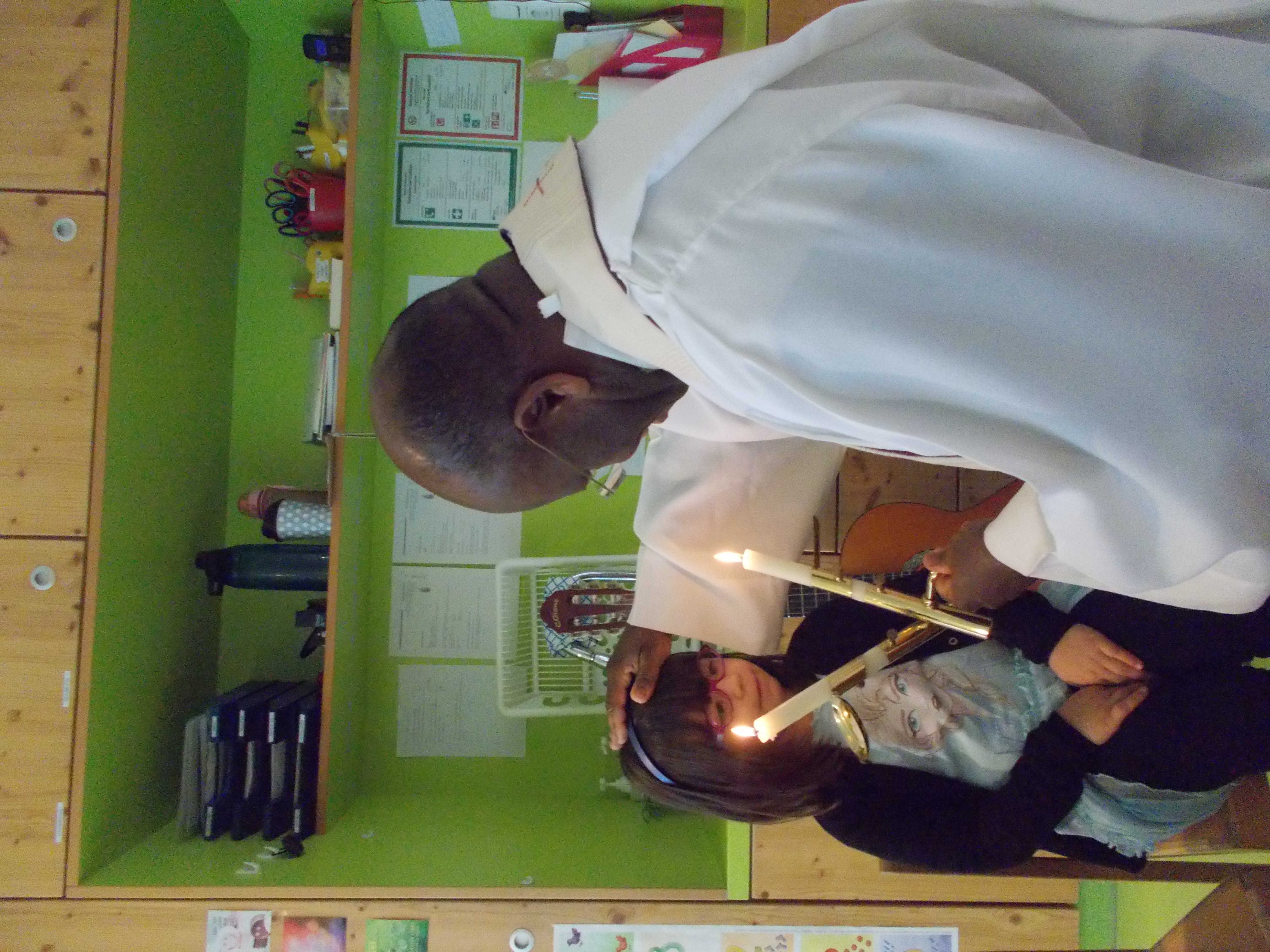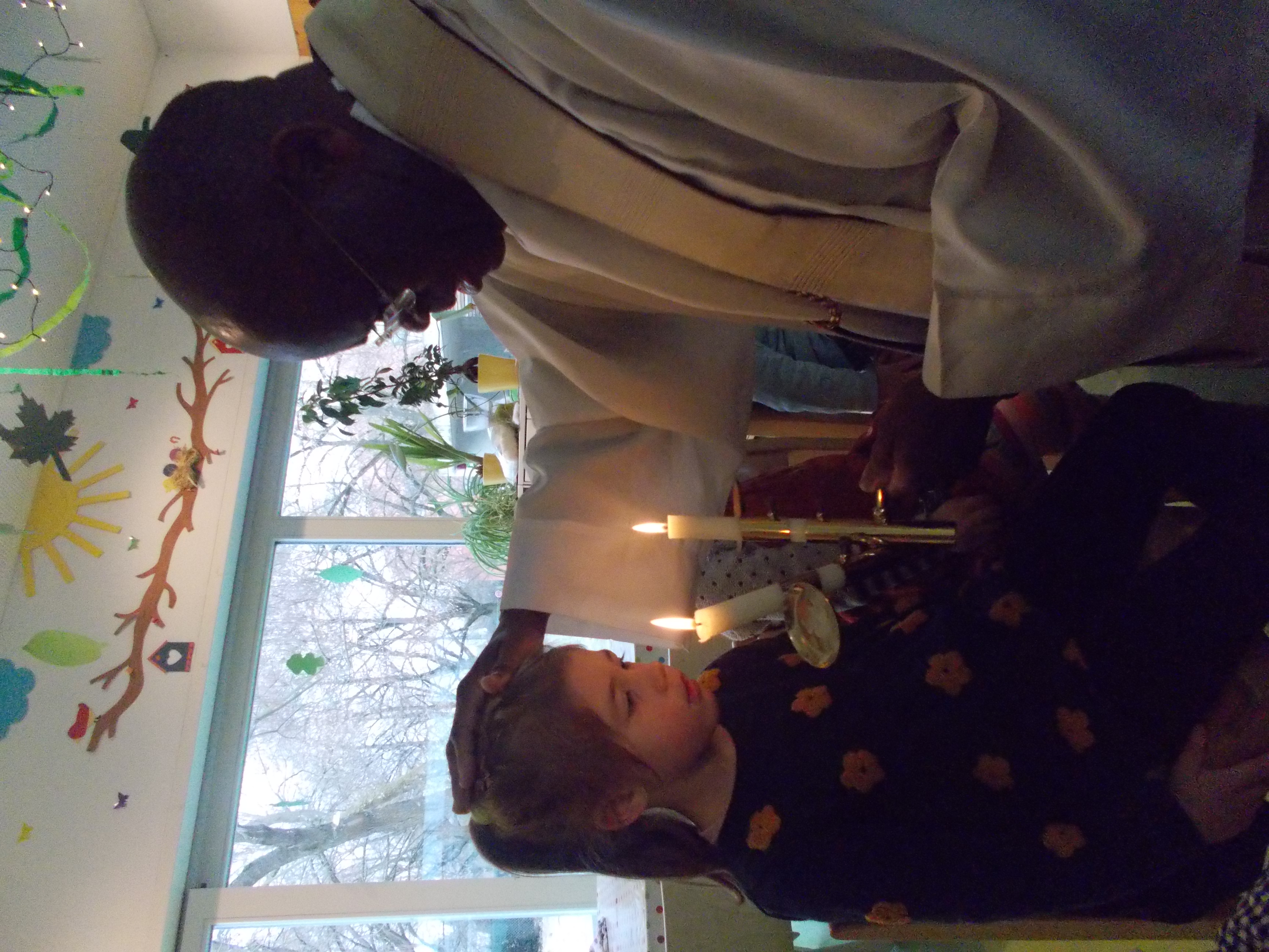 Wir haben gemeinsam gesungen, die Geschichte vom Hl. Blasius besprochen und den Blasiussegen bekommen.