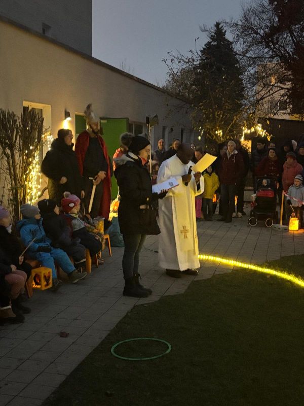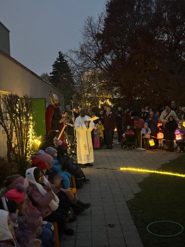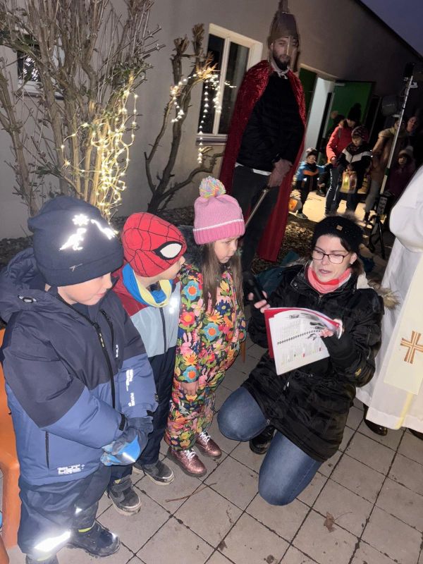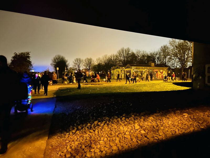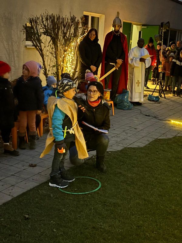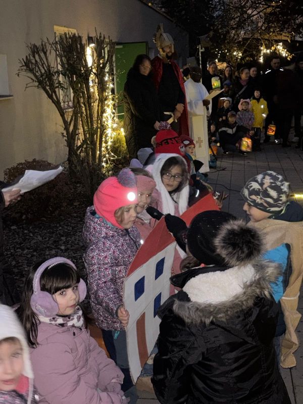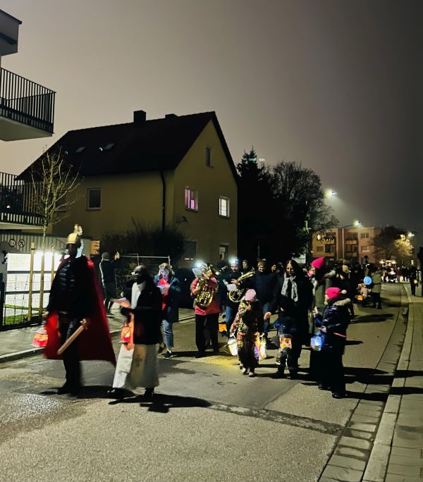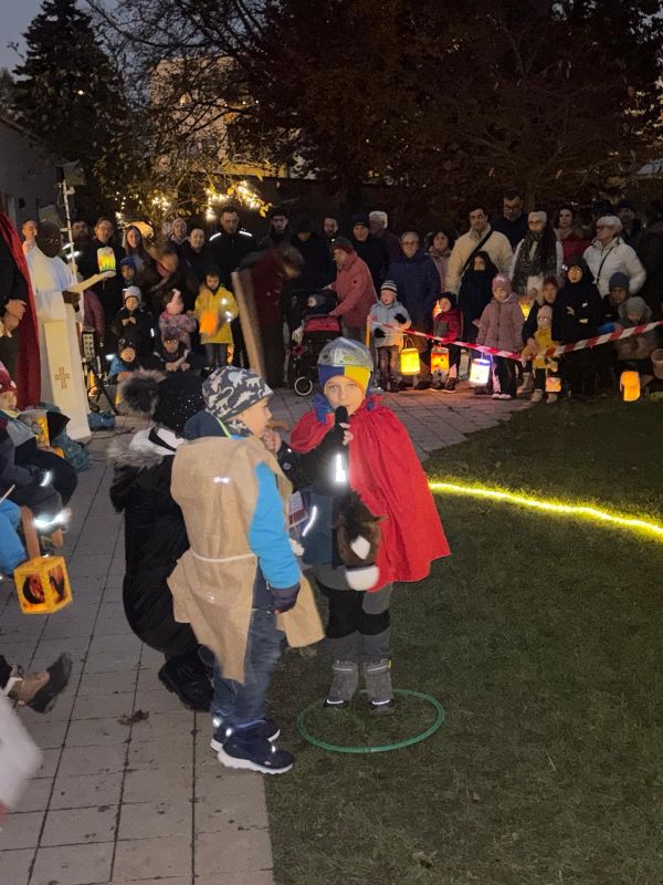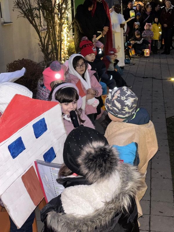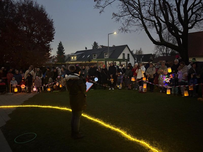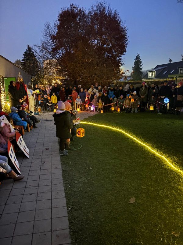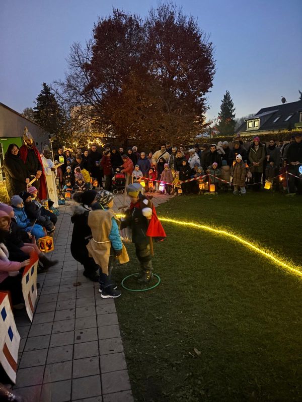 Es waren viele Familien gekommen und nach dem Martinsspiel der Vorschulkinder und einer kleinen Martinsfeier zogen wir mit unseren Laternen durch Weichs.