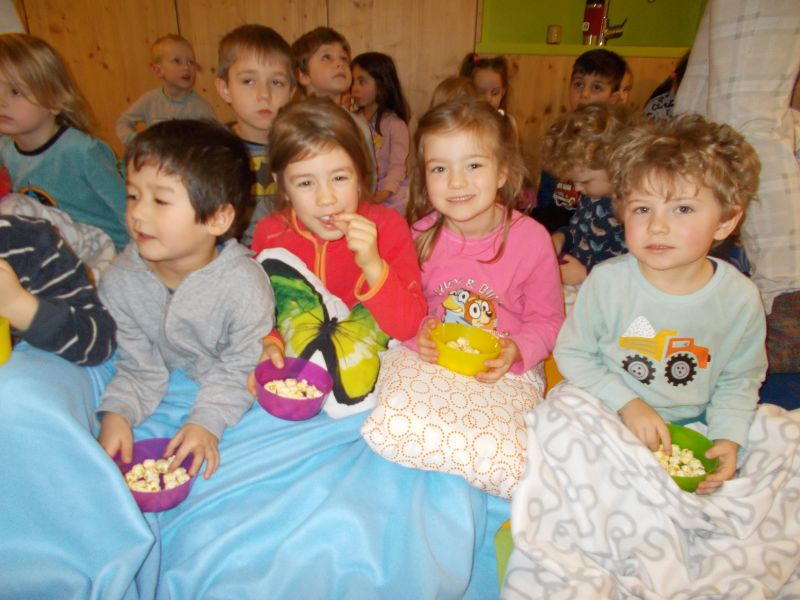 Bei einer Pyjamaparty mit Kinderkino war die Laune super.