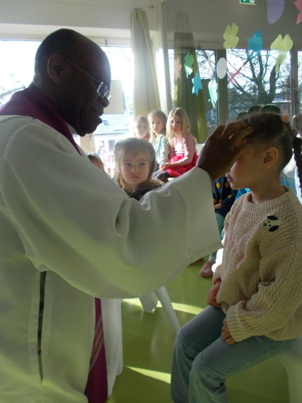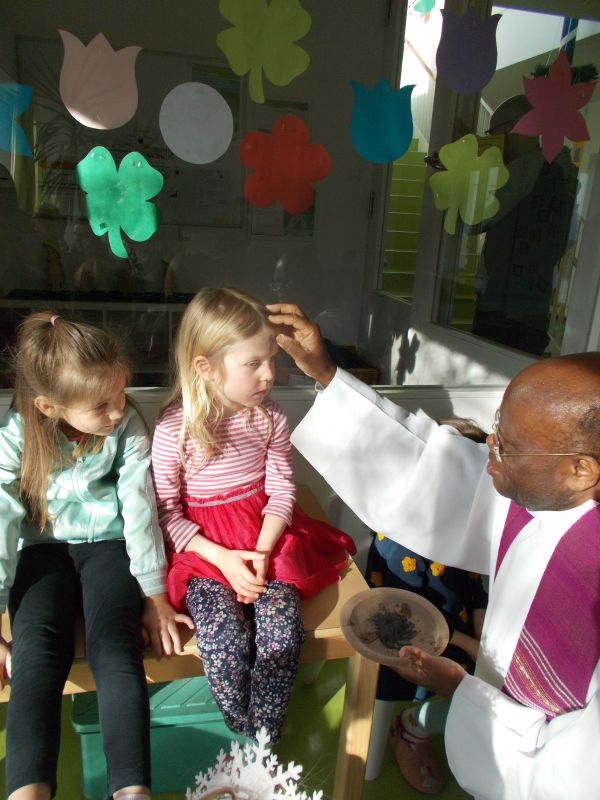 Wir haben eine kleine Aschermittwochandacht gefeiert und Vikar Remy hat allen das Aschenkreuz auf die Stirn gemacht.