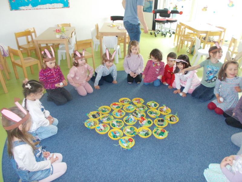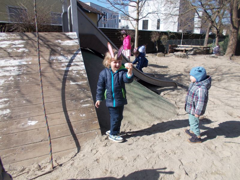 Danach durften die Kinder Ostereier im Garten suchen und es gab für jedes Kind ein Osternest.